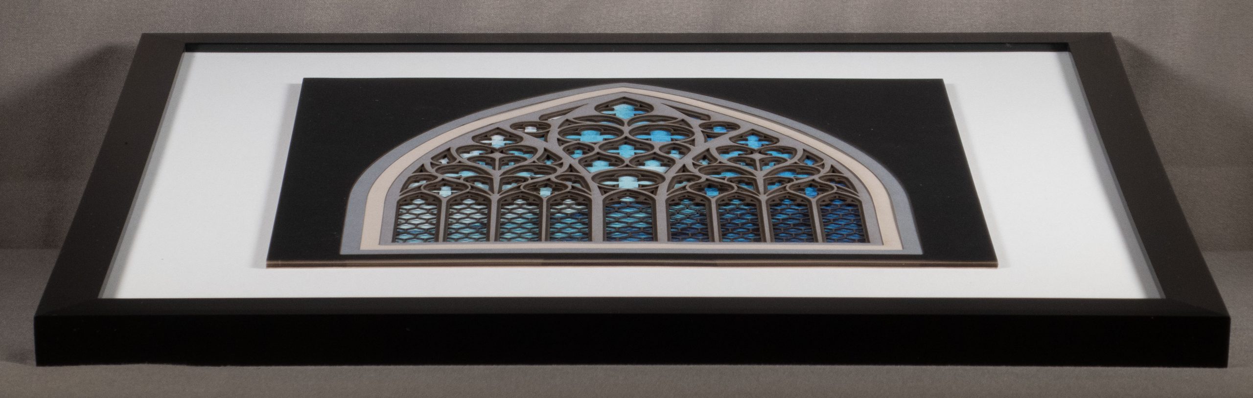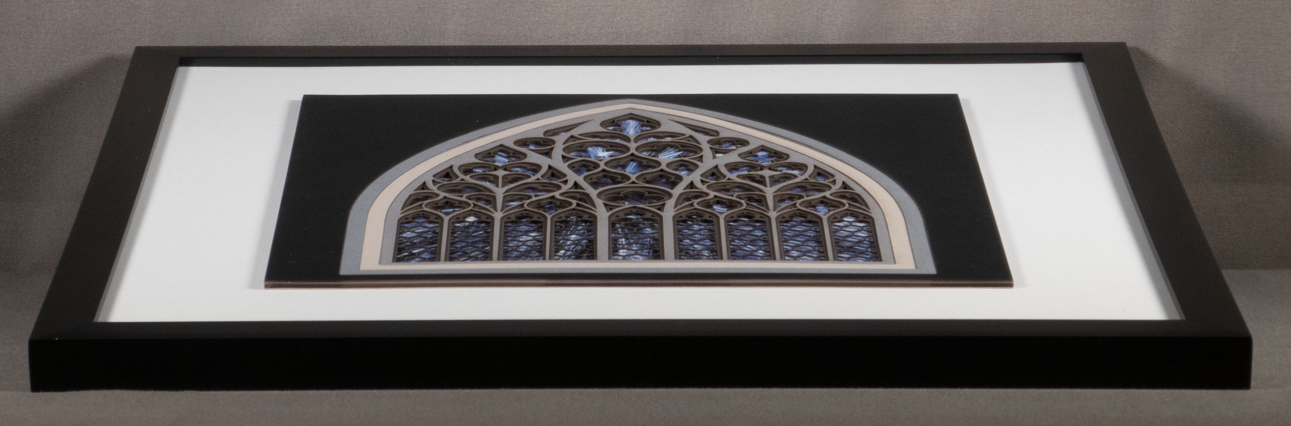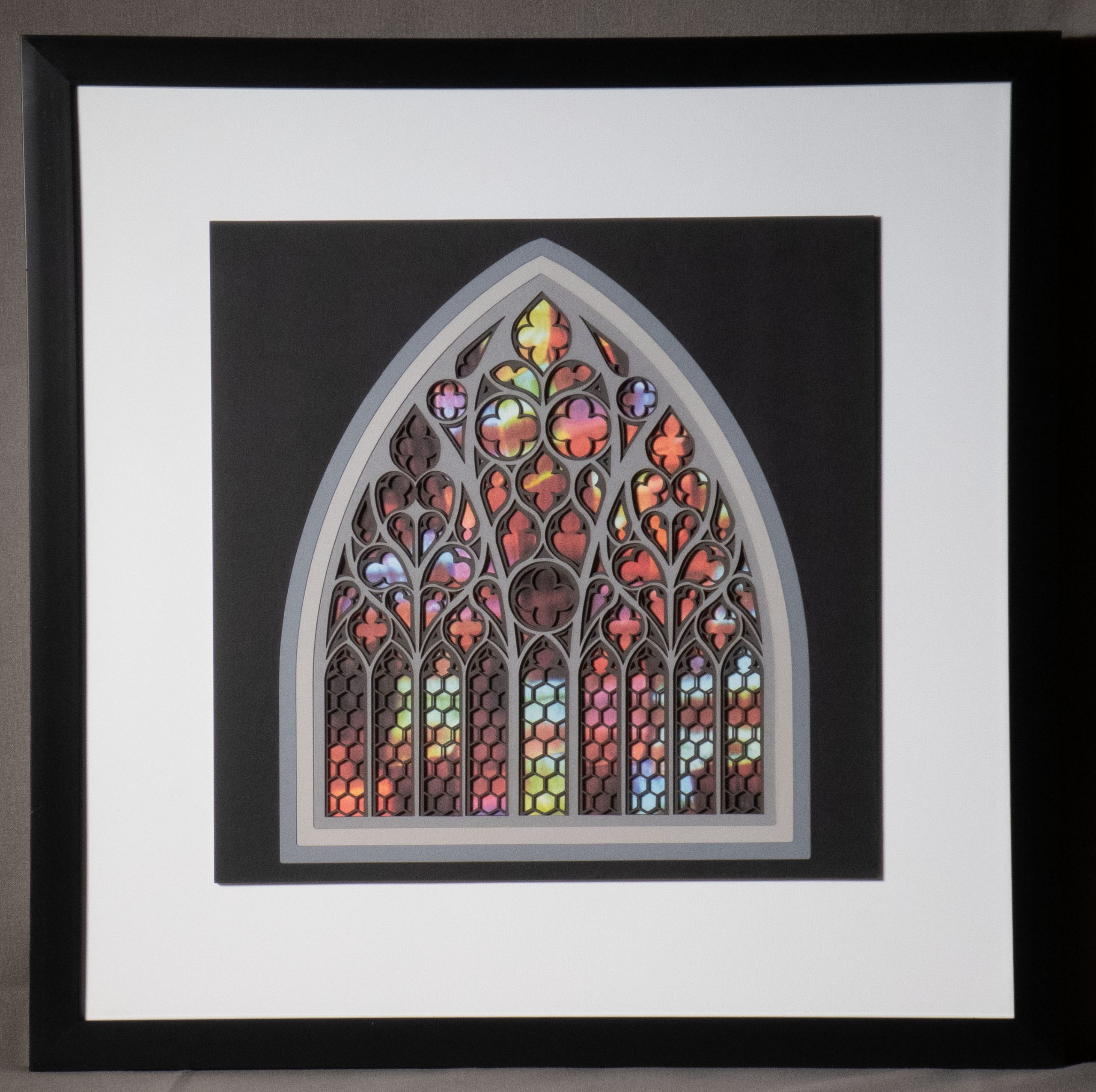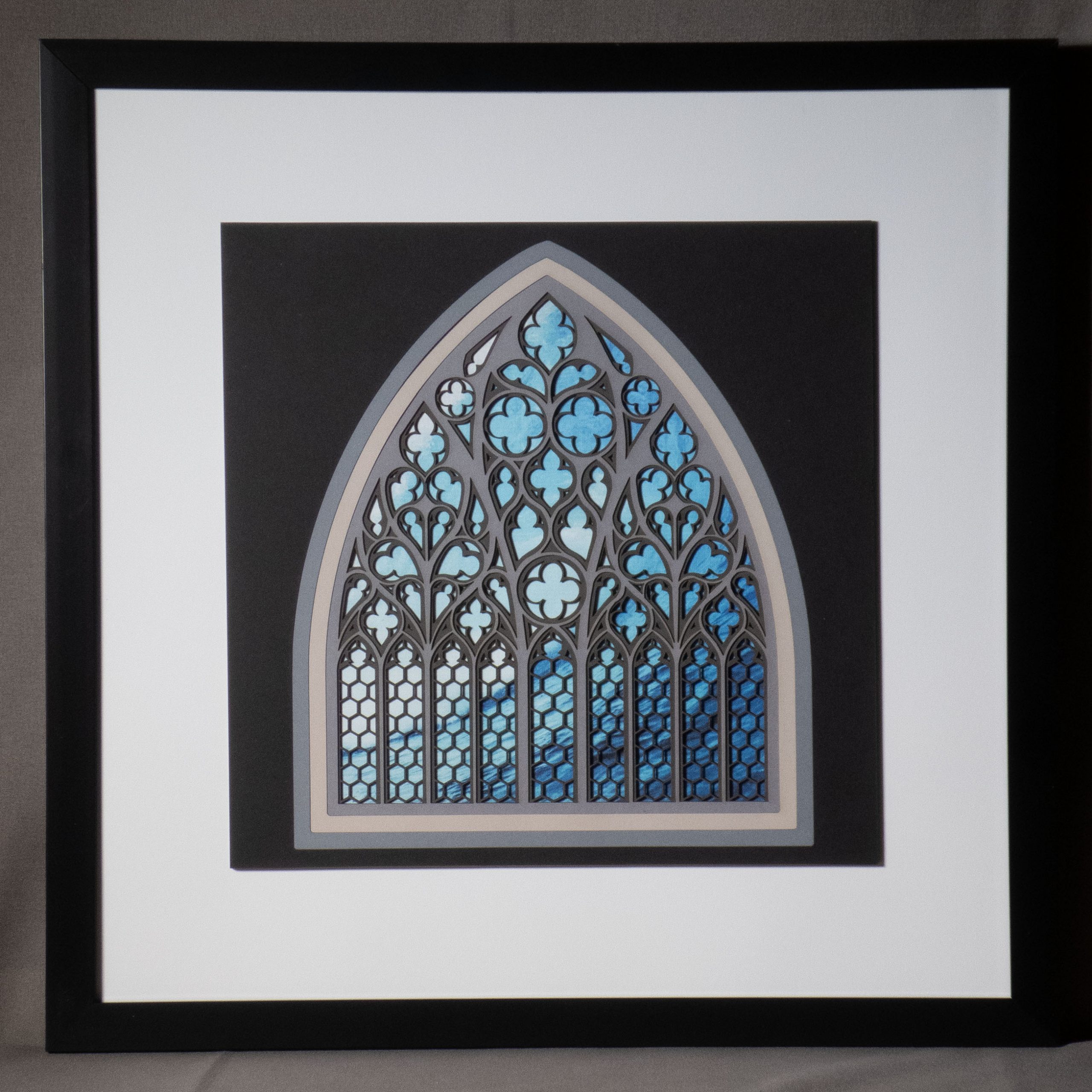 This series brings a single 14th-century cathedral window into dialogue with six very different subjects, using the same eleven-layer design as a constant architectural voice. By placing this medieval structure over images drawn from astronomy, geology, biology, and the natural world, each piece becomes a study in contrast—human order set against forces far older, larger, or more delicate than ourselves.