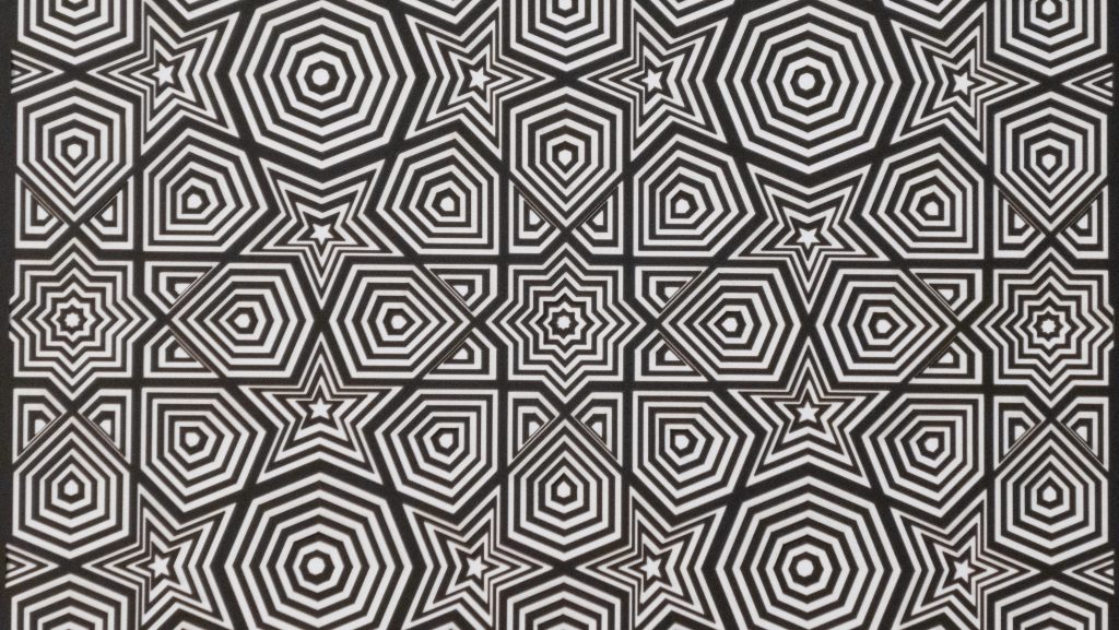 This hypotonic Middle Eastern 12 layer geometric 8-fold rosette pattern is the 2nd zoomed-in version of the “8-Fold Rosette, 4th Square” design.