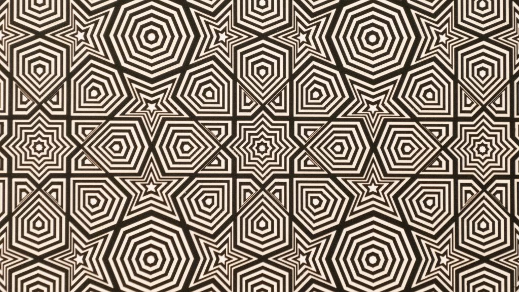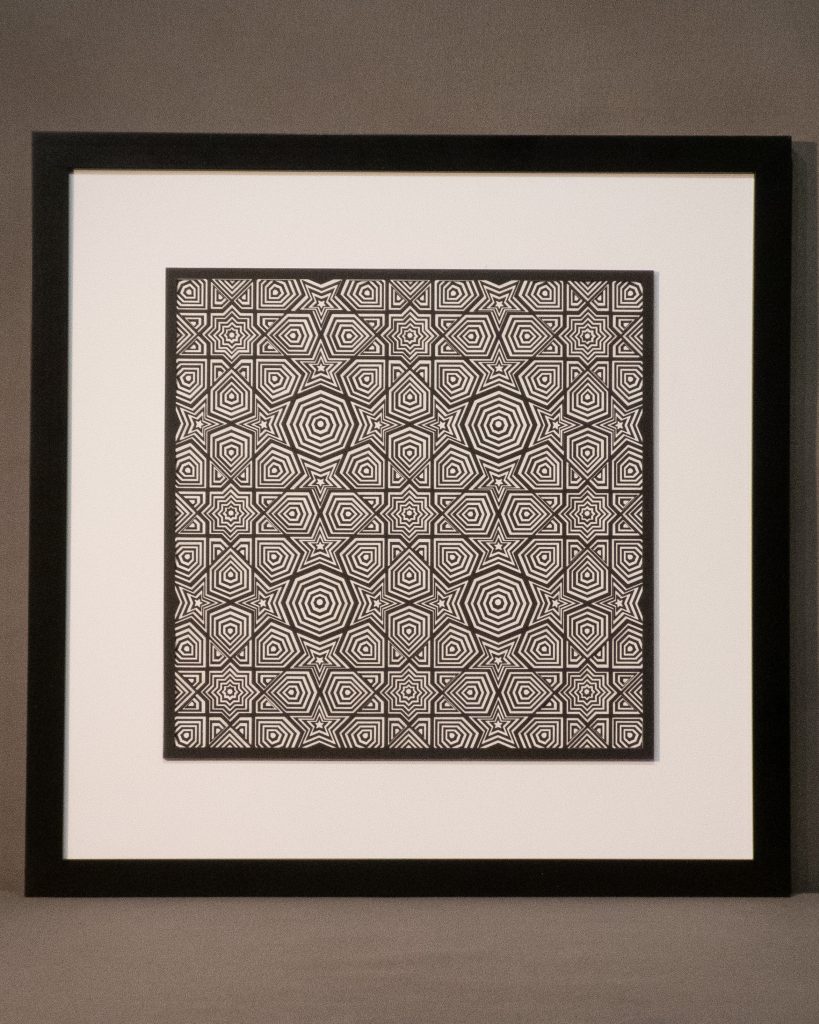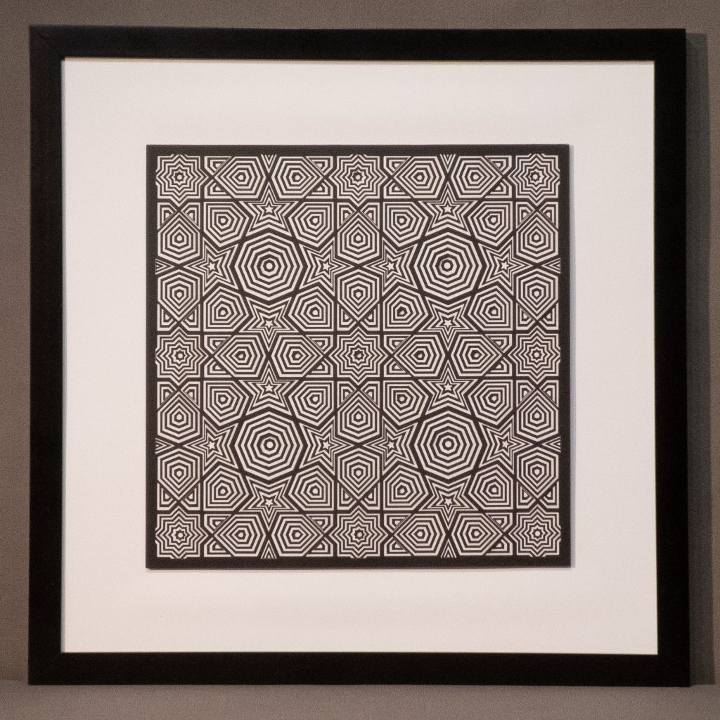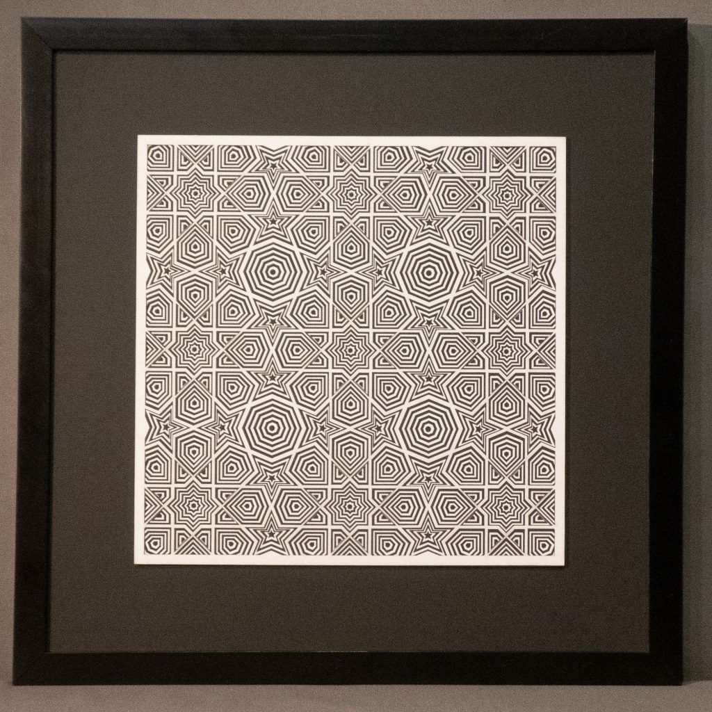 This hypotonic 12 layer geometric design of nine 8-fold rosette patterns from the Middle East is the third zoomed-in versions of the “8-Fold Rosette, 4th Square” design.