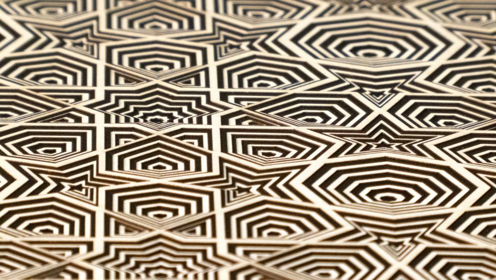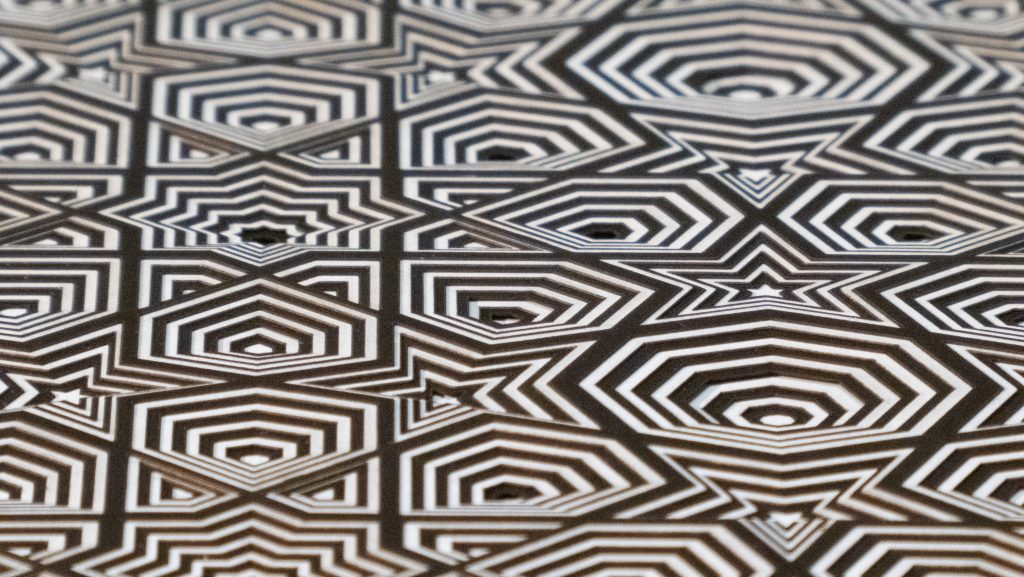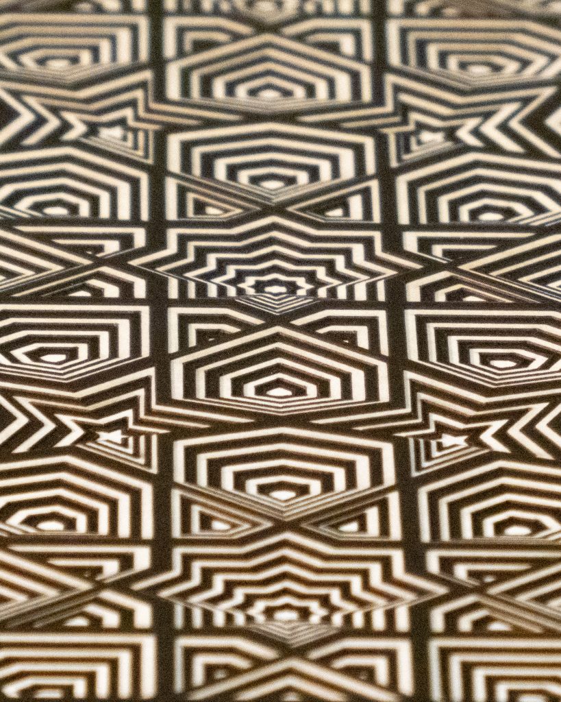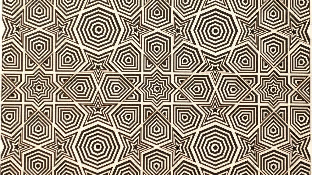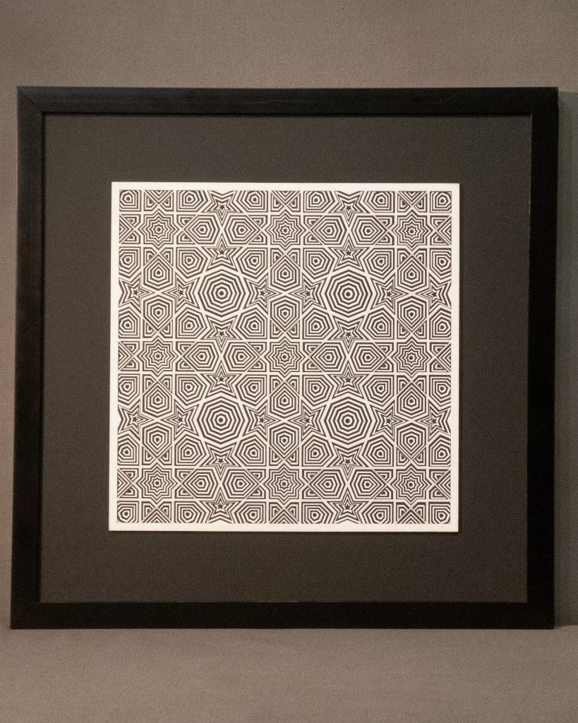 This hypotonic 12 layer geometric design of nine 8-fold rosette patterns from the Middle East is the third zoomed-in versions of the “8-Fold Rosette, 4th Square” design.