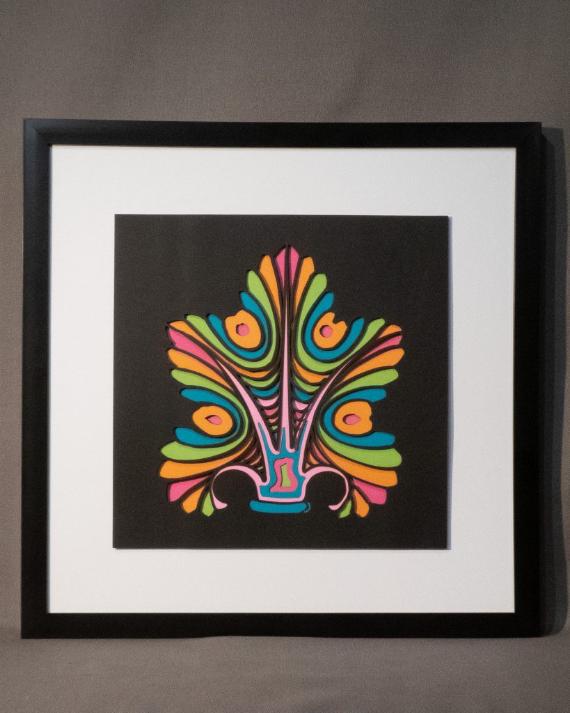 Artwork size: 8.25″ × 8.25″ (210 × 210 mm), mounted on a 12″ × 12″ mat board
