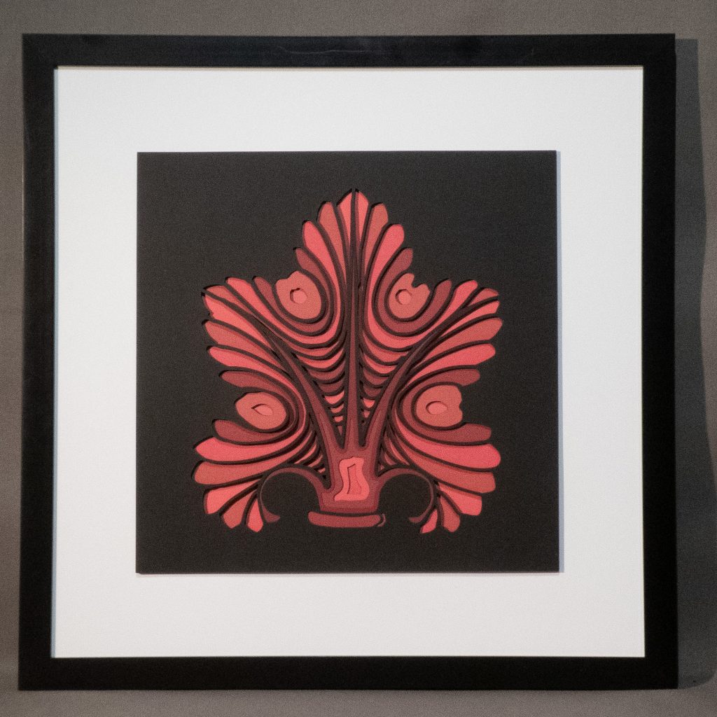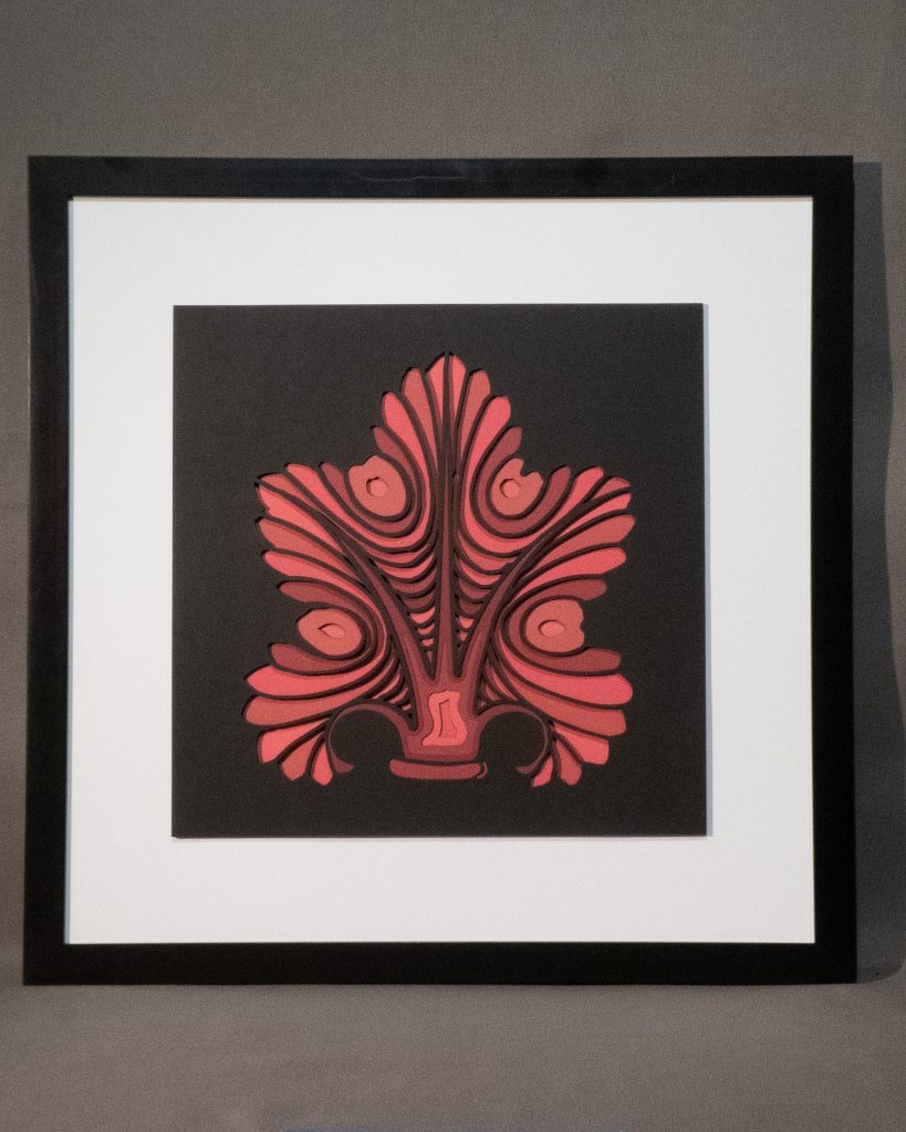The acanthus leaf is a stylized ornamental motif based on the leaves of the Mediterranean Acanthus plant. The motif first appeared in Greek architecture in the 5th century BC, where it adorned the capitals of columns. Over time, the acanthus leaf became a staple in Byzantine, Romanesque, Gothic, Renaissance, and Baroque ornamentation, appearing on temples, pediments, pottery, and fountains. It can still be seen today atop columns at the Acropolis in Athens, Greece.