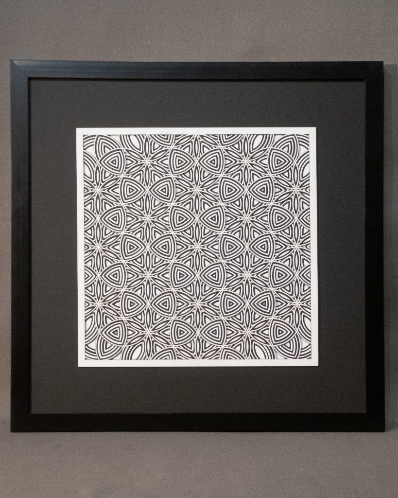 Artwork size: 8.25″ × 8.25″ (210 × 210 mm), mounted on a 12″ × 12″ mat board