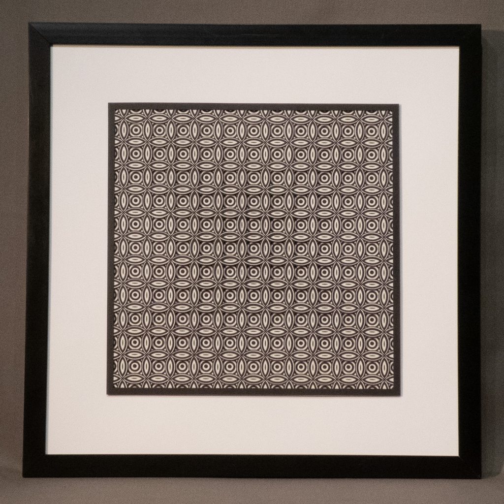 Artwork size: 8.25″ × 8.25″ (210 × 210 mm), mounted on a 12″ × 12″ mat board
