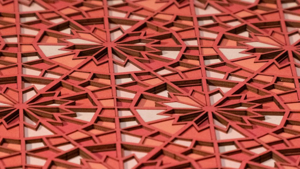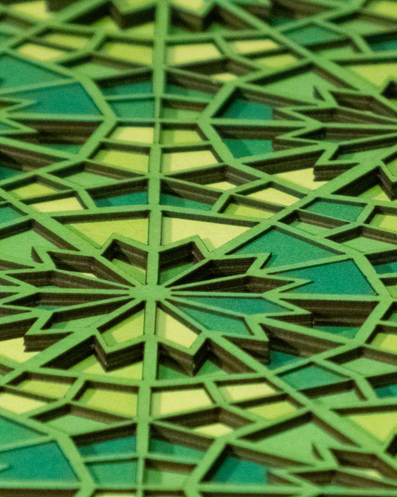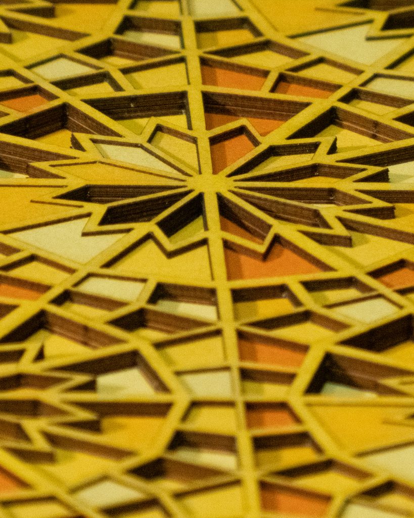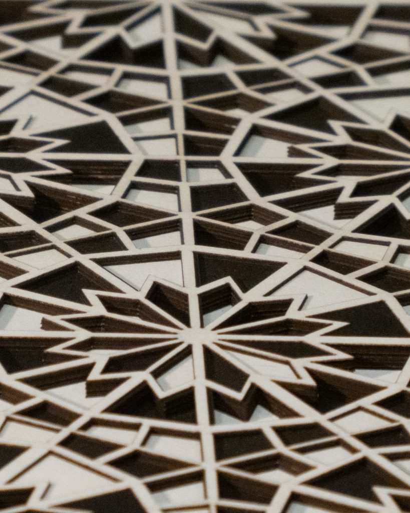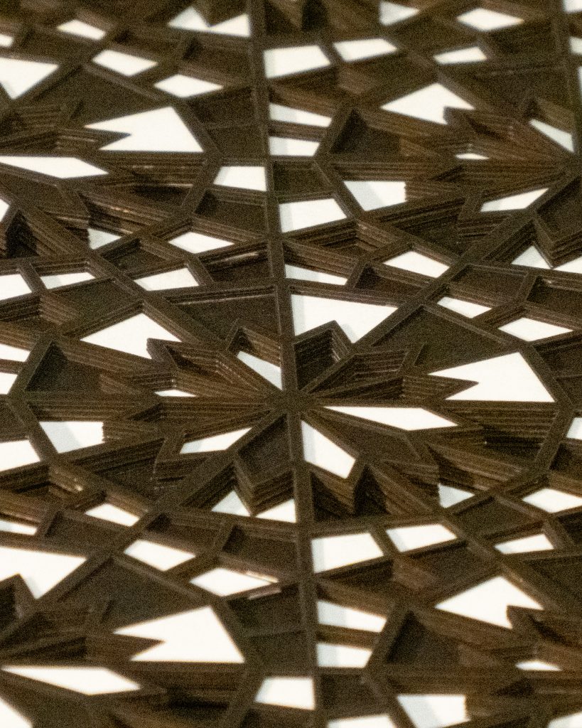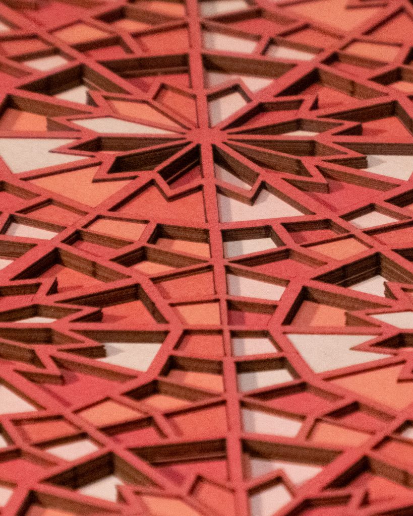 Inspired by a Middle Eastern geometric design from the Middle Ages, the 12 “steps” descend in opposite directions.