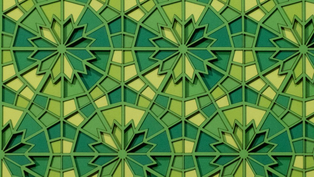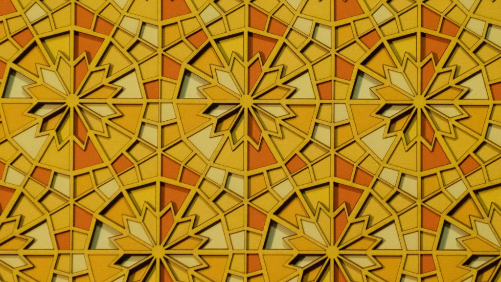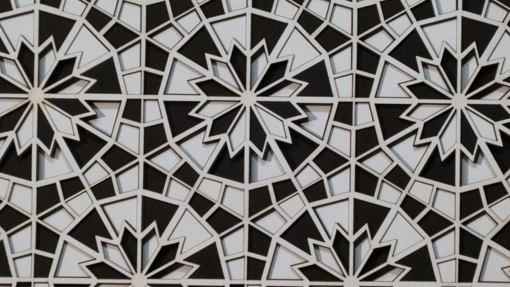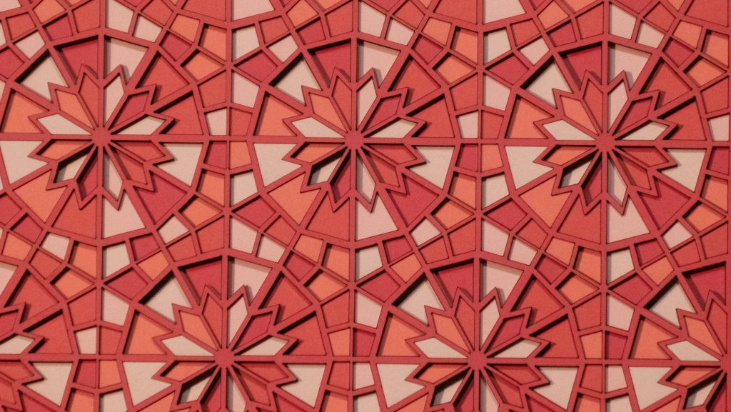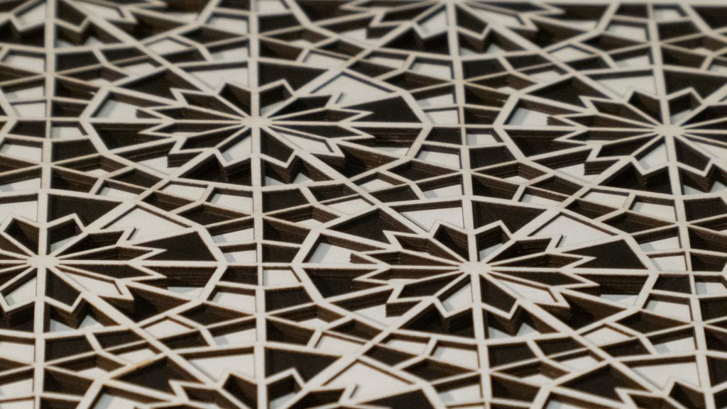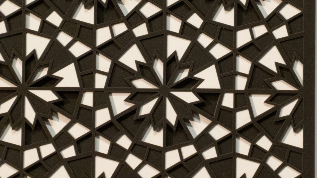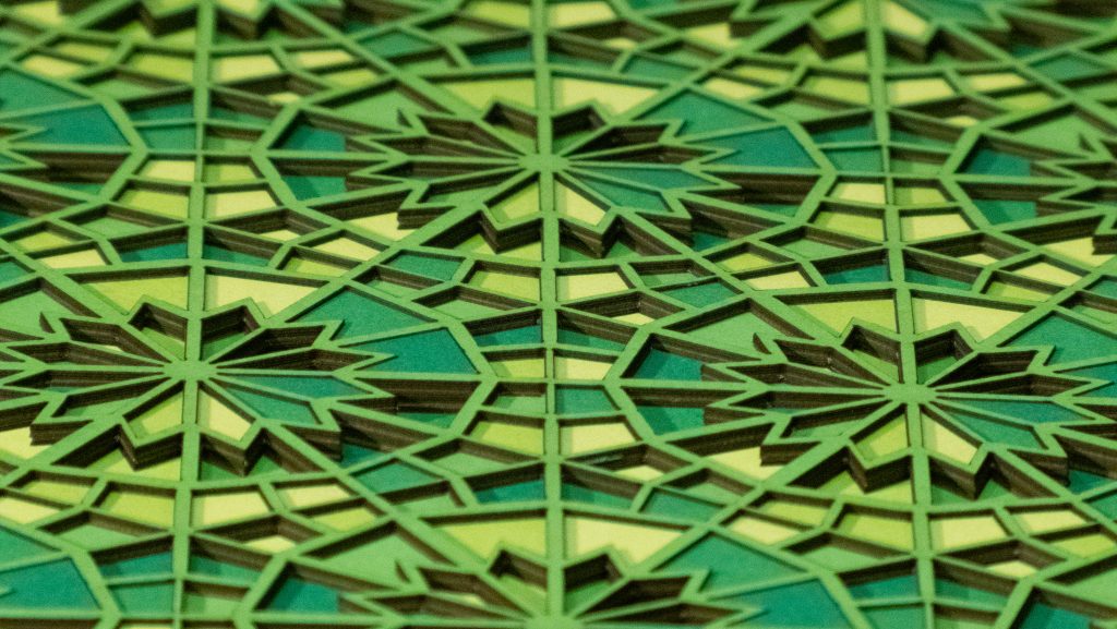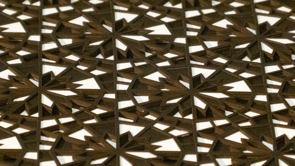 Inspired by a Middle Eastern geometric design from the Middle Ages, the 12 “steps” descend in opposite directions.