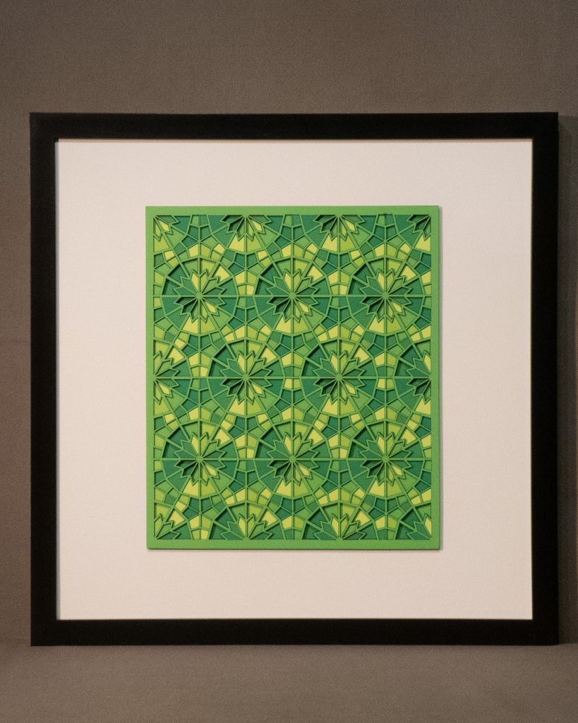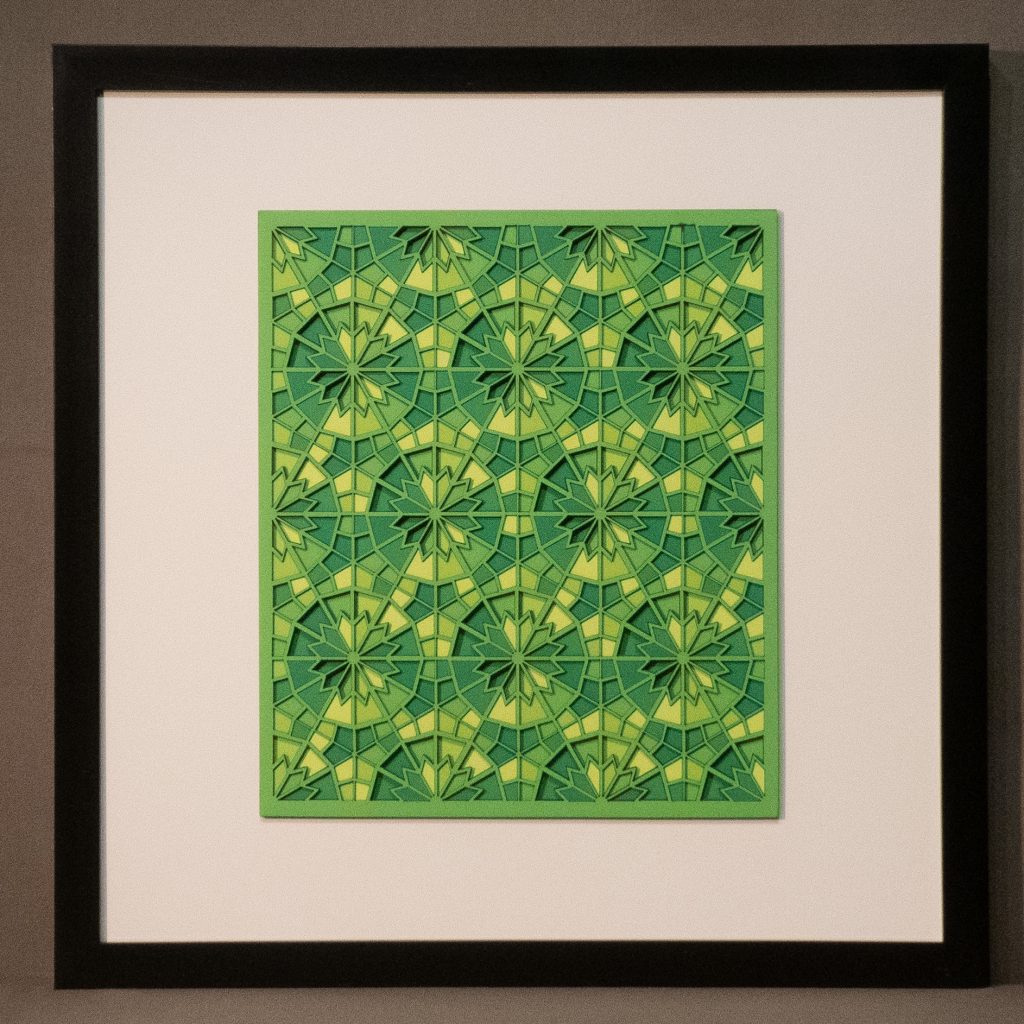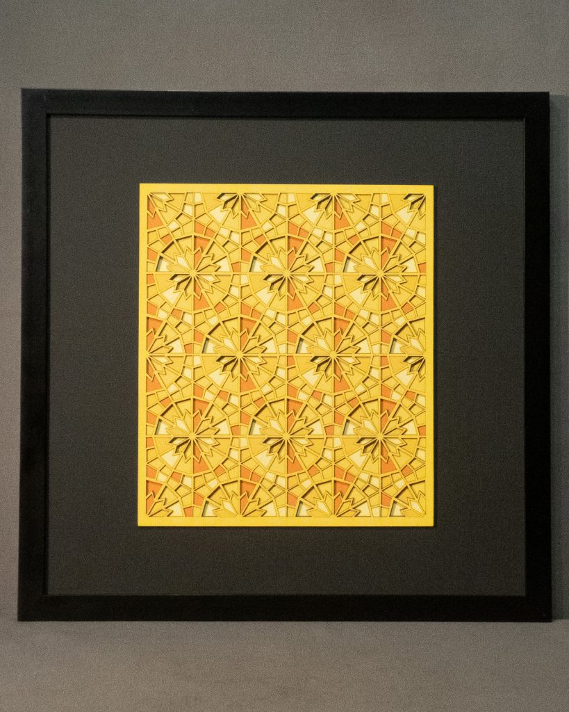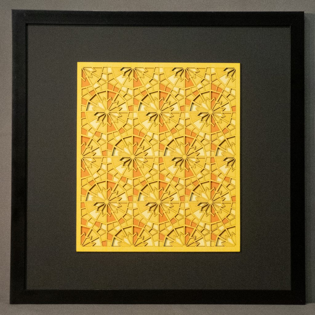 Artwork size: 8.25″ × 8.25″ (210 × 210 mm), mounted on a 12″ × 12″ mat board