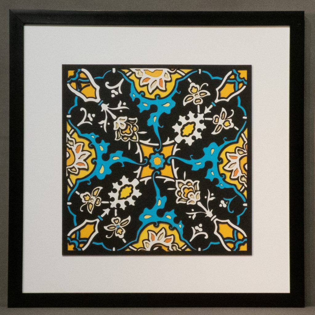 Artwork size: 8.25″ × 8.25″ (210 × 210 mm), mounted on a 12″ × 12″ mat board